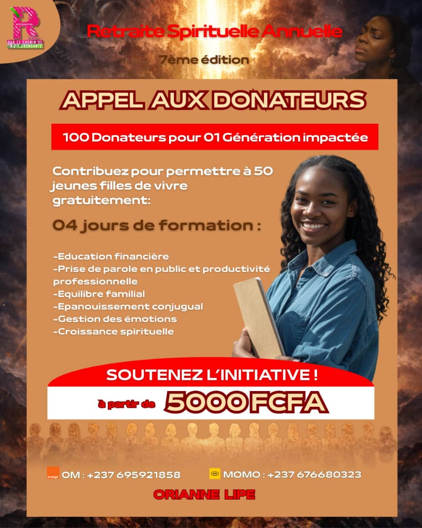 Du 12 au 15 mars 2026 à Okola, le Ministère RESTAURATION organise la 7ᵉ édition de la Retraite Spirituelle Annuelle (RSA), un rendez-vous puissant dédié aux femmes qui désirent se repositionner et avancer dans la victoire que Dieu leur a réservée.
